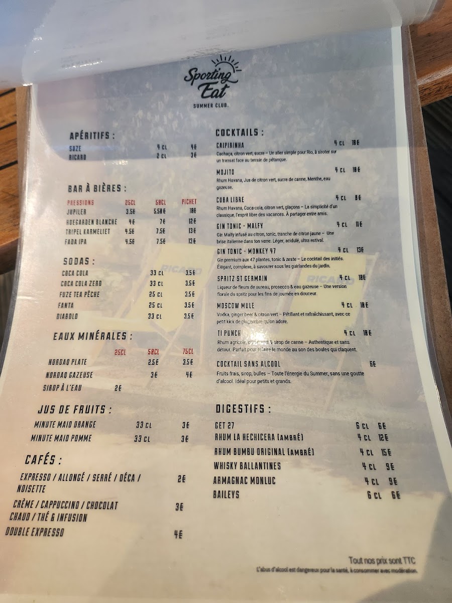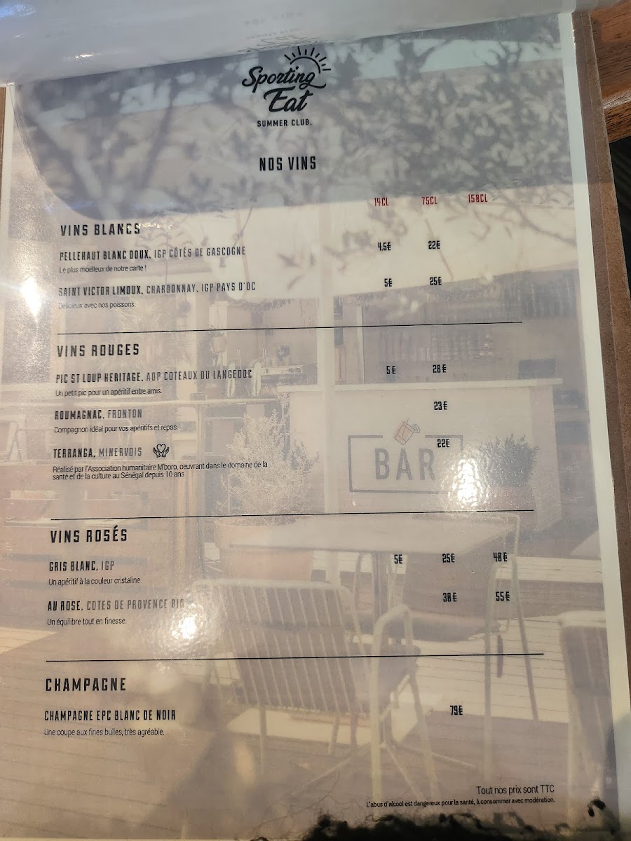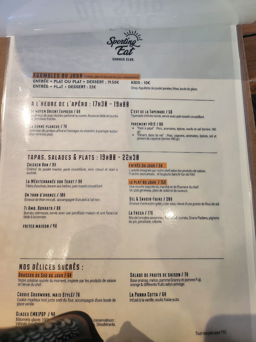 Introducing the Menu at Restaurant Sporting Eat - Toulouse